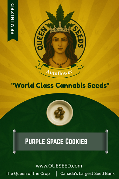 Purple Space Cookies Feminized Marijuana Seeds is an indica-dominant hybrid made by crossing Durban Poison and Girl Scout Cookies. It delivers a strong THC range of 20% to 25%, along with a mild 1% CBD content. Expect sweet cookie-like notes with a touch of calm and relaxation.