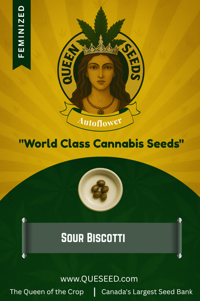 Sour Biscotti Strain produces heavy flowers with striking light and dark green leaves. The flowers are covered with tacky white trichomes, which make them frosty and resinous to the touch. Its appearance is its bold and eye-catching nature, particularly when lit as the resin is reflected through. Besides its appearance, this strain has a distinctive smell with sour overtones balanced by candy-like sweetness and a hint of gas, emitting a pungent yet smooth odor. Smoked or vaped, the flavor follows suit—sour and sweet with a gassy undertone with aftertaste. These characteristics distinguish it from other equal-balanced hybrids. Sour Biscotti Strain is also noted to yield consistent results and is available at QueSeed.
